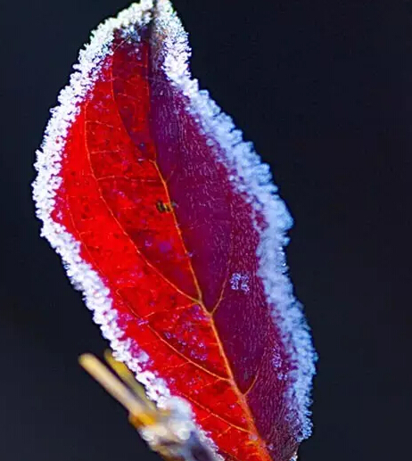 秋晚沒(méi)有云彩,地面上如同揭了被,散熱很多,溫度驟然下降到0℃以下,靠地面不多的水汽就會(huì)凝結(jié)在溪邊、橋間、樹(shù)葉和泥土上,形成細(xì)微的冰針,有的成為六角形的霜花。