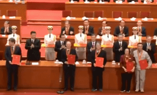 改革開放40周年大會上,黨和國家領(lǐng)導人集體轉(zhuǎn)身,向“改革先鋒”稱號獲得者和“中國改革友誼獎?wù)?rdquo;獲得者表示祝賀。