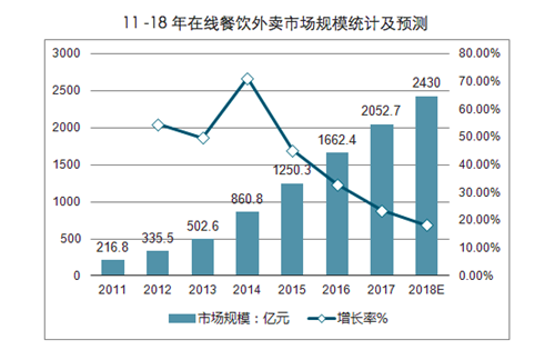 美團外賣、餓了么等外賣平臺誕生以來,在線外賣行業(yè)的市場規(guī)模高速發(fā)展,在2017年達到了2052.7億元,用戶數(shù)超過3億人。在線外賣市場還在不斷下沉,二三線城市還有寬廣的市場空間。