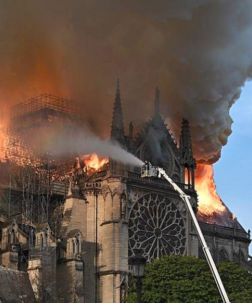 消防部門使用高壓水槍滅火,在經(jīng)過4個多小時救援后,火勢逐漸冷卻得以控制,巴黎圣母院的主體結(jié)構(gòu)得以保存和保護。