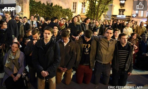 救火期間,有人在街邊唱歌為圣母院祈禱,許多人跪地為圣母院祈禱。
