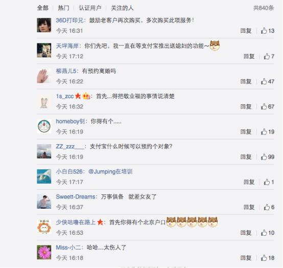 這么一個(gè)明顯自帶單身狗傷害屬性的功能,支付寶官微剛發(fā)布,一堆民間段子手就攻陷了支付寶官微的評(píng)論,直呼“這個(gè)功能太強(qiáng)大,單身狗已準(zhǔn)備卸載支付寶”、“請(qǐng)開發(fā)單身狗專用支付寶”、“還能不能讓我們生活得有點(diǎn)難度了”。