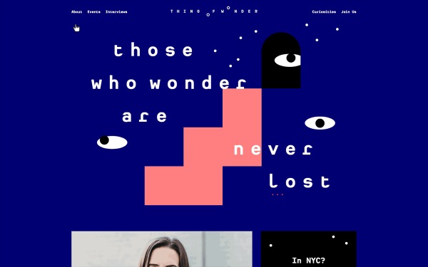 這不是某一種類別的導(dǎo)航,而是一系列的導(dǎo)航方式。往往用在作品集網(wǎng)站上,設(shè)計(jì)師可以天馬行空發(fā)揮創(chuàng)意。這種導(dǎo)航的特點(diǎn)往往是拋棄傳統(tǒng)導(dǎo)航,把導(dǎo)航欄里的條目拆分到頁(yè)面各處。角落往往是最受歡迎的。
