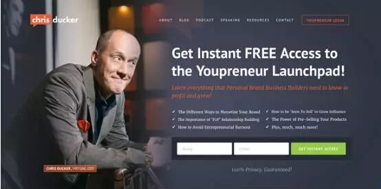 好的圖片對于主頁設(shè)計來說至關(guān)重要。我就在自己的博客主頁上添加了一張長圖片,這張圖片讓我的博客顯得更加與眾不同,上面所提到的所有網(wǎng)站也都非常擅長利用圖片來吸引讀者。特別是Chris Ducker(上面第二個案例),他是圖片使用方面的專家,他將自己的照片放在網(wǎng)站主頁上,照片中他的目光注視著網(wǎng)頁上的信息欄和CTA,意在表示自己希望大家能夠響應(yīng),用戶往往會受到圖片的暗示,注意力順著他的目光看向右邊,然后進行相應(yīng)的動作,最終完成轉(zhuǎn)化。