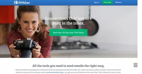 最近,Aweber通過更新主頁設(shè)計,轉(zhuǎn)化率得到了明顯的提升。正如圖中banner文字描述的那樣:你和用戶的連接,一切從收件箱開始。