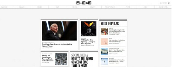 突出品牌的方式有很多,內(nèi)容是其中很重要的部分,同時視覺和體驗(yàn)也不容忽略。比如在技術(shù)類數(shù)字雜志中極為出名的 Wired ,也就是《連線》雜志。獨(dú)樹一幟的 LOGO,黑白分明的配色融入整個數(shù)字雜志的網(wǎng)站設(shè)計,和 LOGO 以及品牌本身遙相呼應(yīng)。