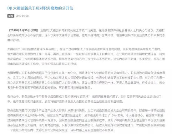 不僅僅是對公司內(nèi)部,職務(wù)腐敗還會對整個產(chǎn)業(yè)鏈產(chǎn)生多大影響?大疆在一封公開信中表示,從原材料采購、加工半成品到最后成為企業(yè)可用的零件,即使每一環(huán)節(jié)的腐敗使得采購成本只上升5%-10%,經(jīng)過三層產(chǎn)業(yè)鏈到達(dá)企業(yè)時,成本在無形中增加了16%-33%,令人觸目驚心。